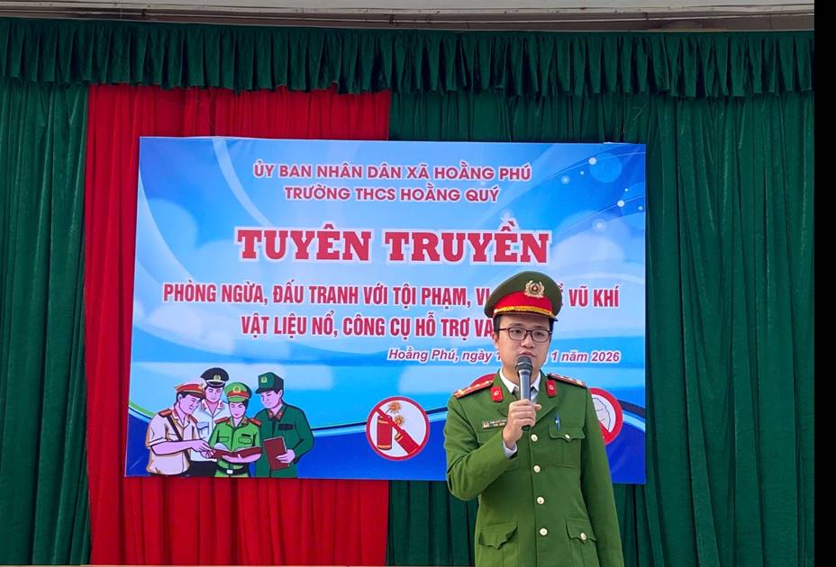 Thực hiện chương trình phối hợp giữa Công an xã Hoằng Phú và các trường học trên địa bàn xã, nhằm bảo vệ môi trường học đường an toàn, lành mạnh, Đoàn Thanh niên xã Hoằng Phú xin gửi tới các bạn thông điệp quan trọng về phòng ngừa, đấu tranh với các vi phạm về vũ khí, vật liệu nổ và công cụ hỗ trợ.