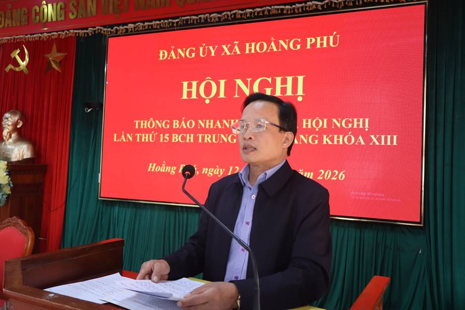 Thực hiện sự chỉ đạo của cấp trên, ngày 12 tháng 01 năm 2026, Đảng ủy xã Hoằng Phú đã tổ chức Hội nghị thông tin nhanh kết quả Hội nghị lần thứ 15 Ban Chấp hành Trung ương Đảng khóa XIII tới các đồng chí Ủy viên Ban Thường vụ, Ủy viên Ban chấp hành, lãnh đạo, cán bộ, công chức cơ quan Đảng ủy, HĐND, UBND, Ủy ban MTTQ, các tổ chức chính trị - xã hội, Bí thư các Đảng bộ, chi bộ trực thuộc Đảng ủy xã.